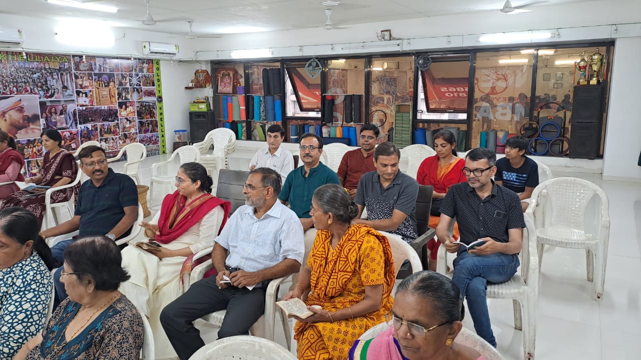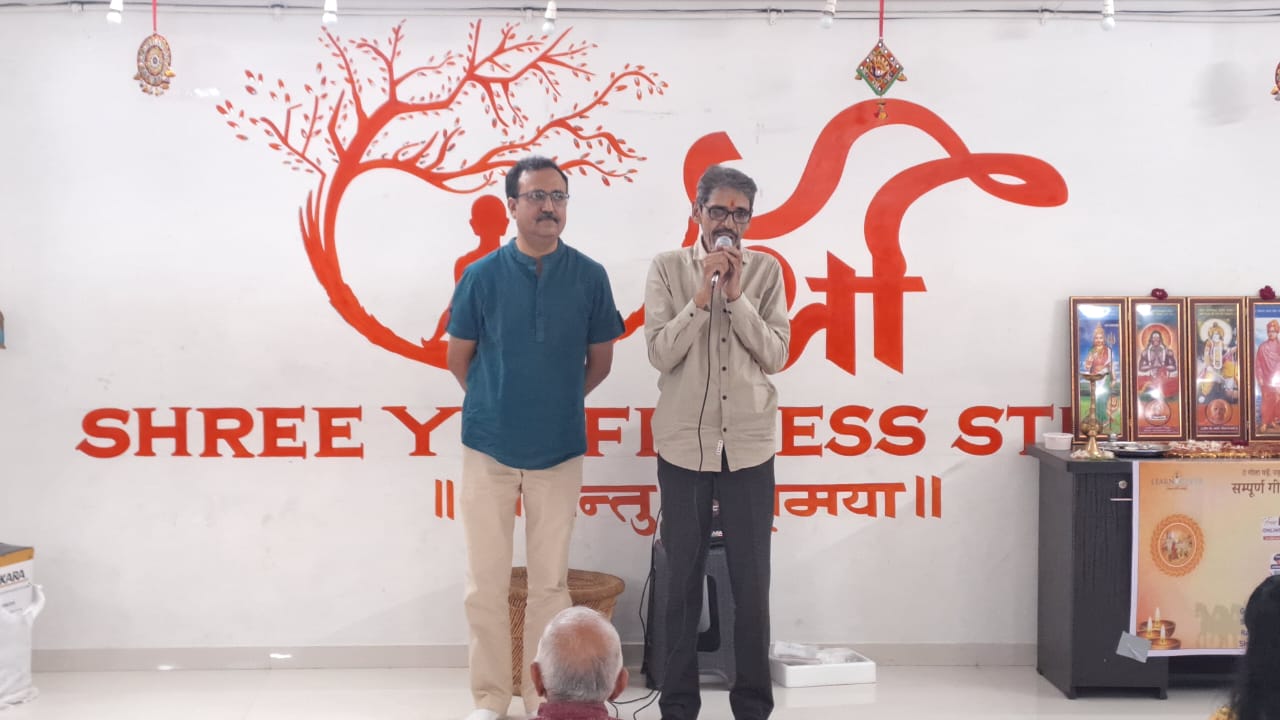 A group recitation of all shloka of Shreemad Bhagwad Geeta Shree Yoga and Fitness Studio at Pal Sun, Sep 28 2025, 03:00 PM • Posted by: Admin . A group recitation of all shloka of Shreemad Bhagwad Geeta was done by members of IMA Surat along with members of Geeta Pariwar Surat between 3 to 6 pm at Shree Yoga and Fitness Studio at Pal. Around 100 sadhak attended. Hiral Vaidya welcomed all and briefed about the program. Dr CB Patel gave a vote of thanks.